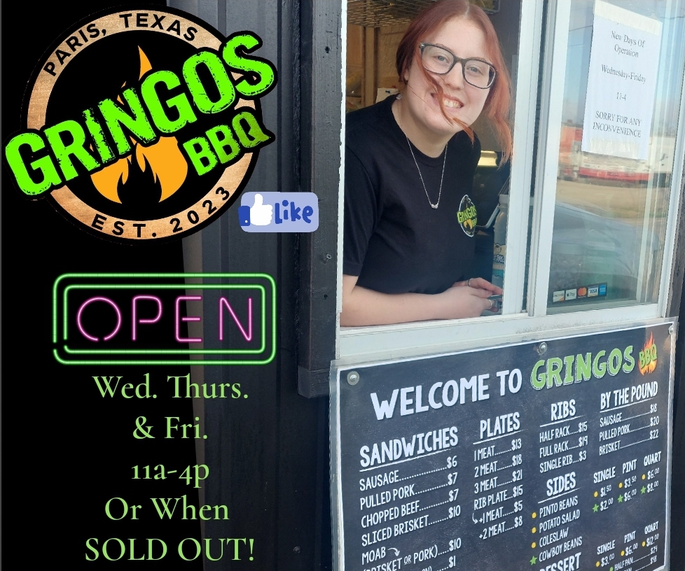 Welcome to Gringos BBQ, a standout eatery located at 1343 S Church St, Paris, TX. This haven of flavor specializes in expertly smoked meats that leave a lasting impression. Your taste buds will thank you for trying the tender brisket, renowned for its perfect smoke ring and melt-in-your-mouth goodness. The ribs are another highlight, described as fall-off-the-bone tender and perfectly spiced.